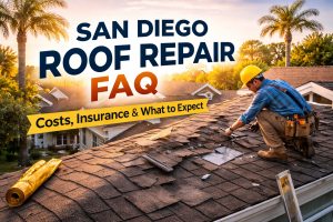 San Diego Roof Repair FAQ: Costs, Insurance & What to Expect (in 2026) April 8, 2026 How much does roof repair cost in San Diego? Minor roof repairs in San Diego typically run a few hundred dollars, while more substantial repairs Read More »